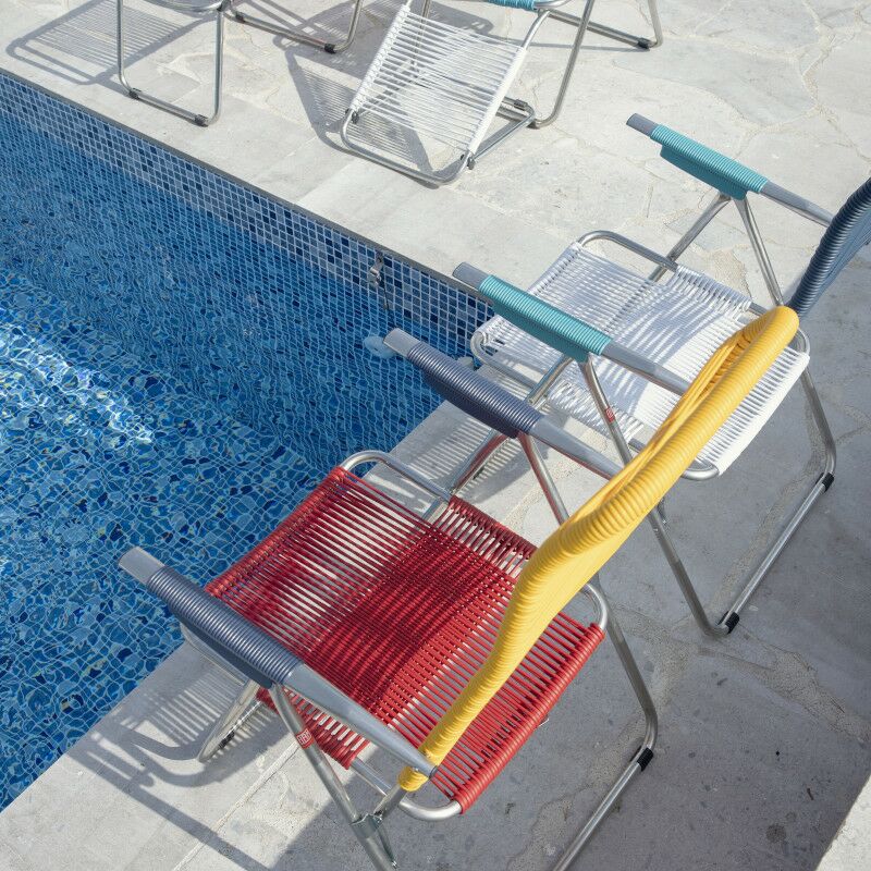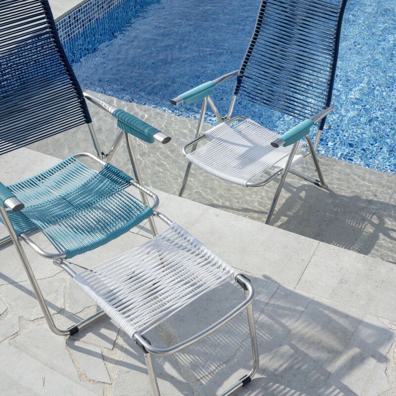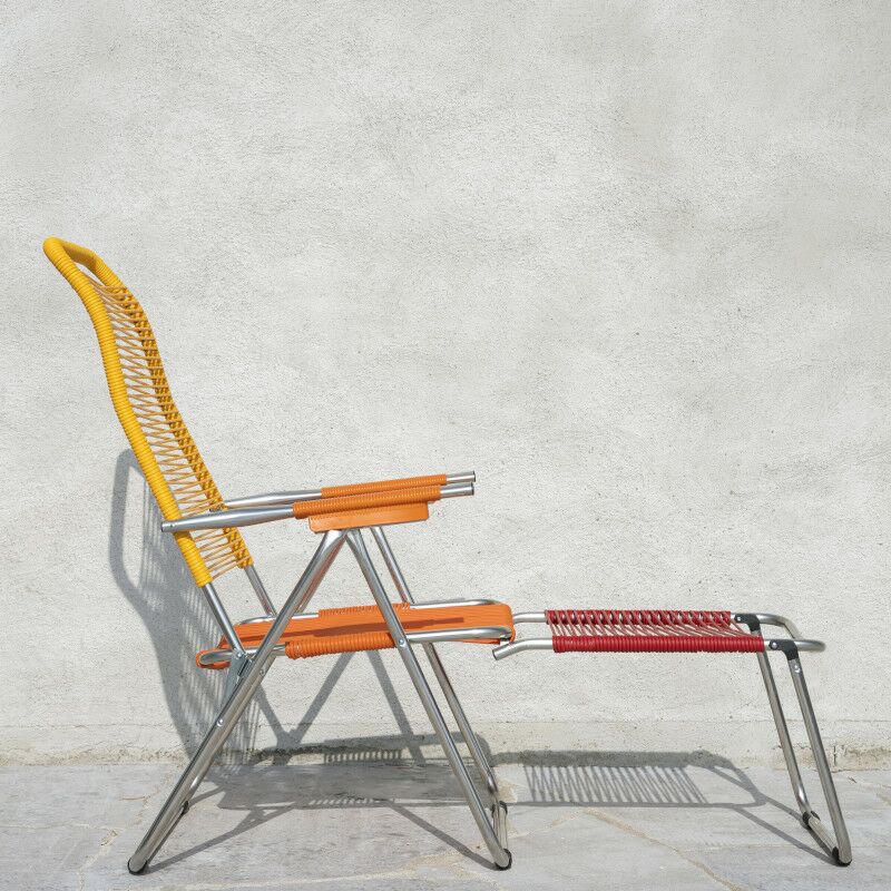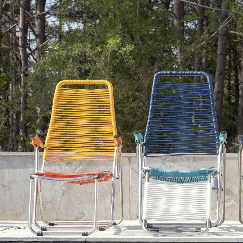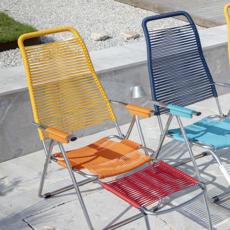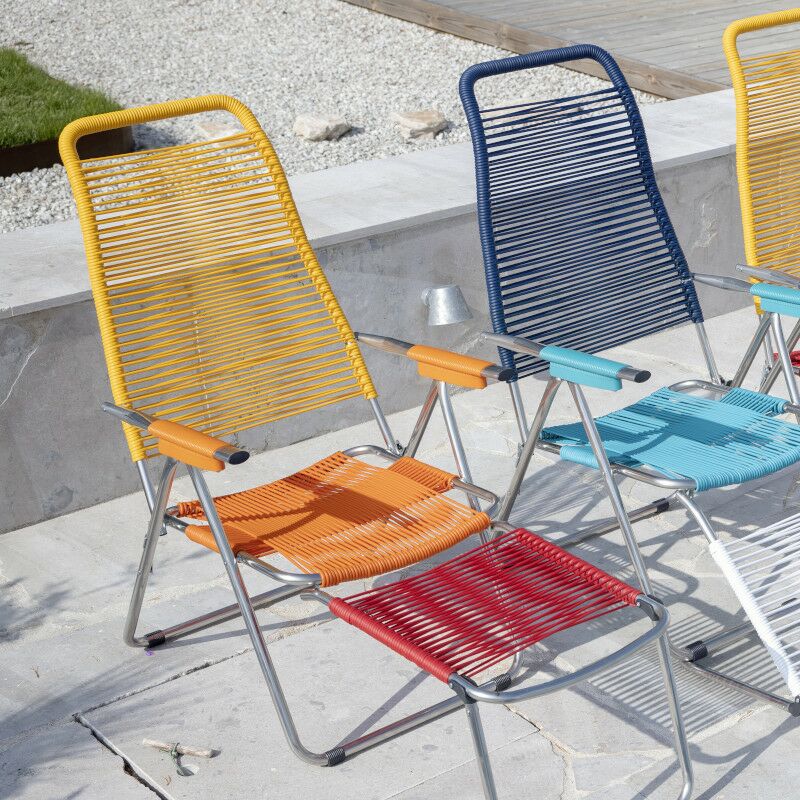 Der beliebte Fiam Spaghetti jetzt in einer Multicolor-Ausführung! Drei attraktive Farben der Spaghettischnürung vereinen sich in einem stilvollen Liegestuhl.