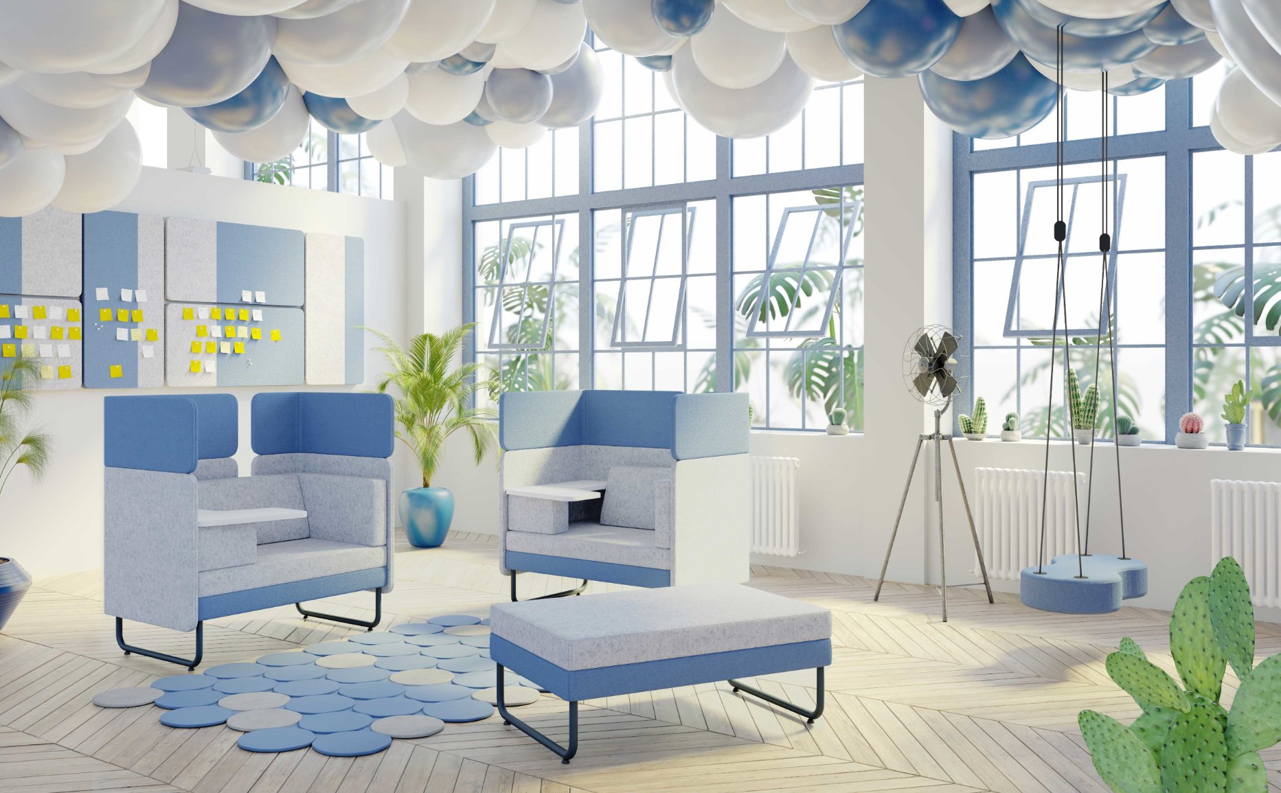 Die Sofas der Linie Work&Relax können dank ihrer akustischen Eigenschaften in jedem Raum einen komfortablen Treffpunkt schaffen. Die gepolsterten hohen Paneele dämpfen Lärm, sodass äußere Reize uns bei Gesprächen nicht ablenken.